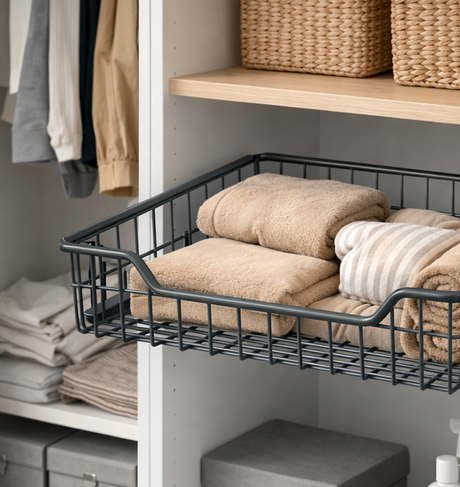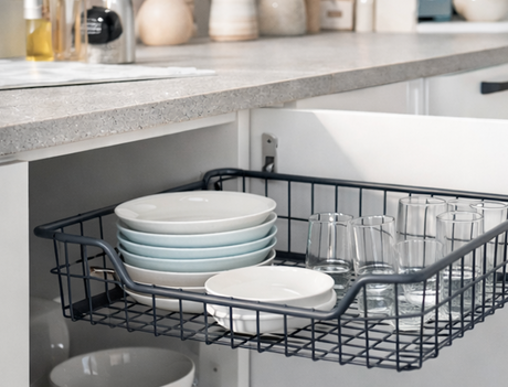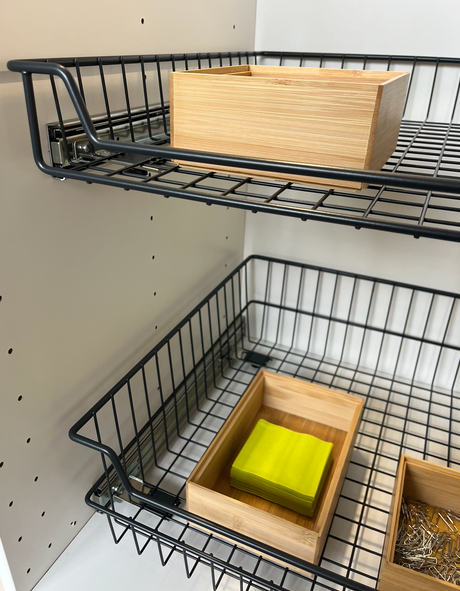 Das Korb-Kombisystem ist ein mehrstufiges Stauraumsystem, das speziell entwickelt wurde, um den Platz in Schränken, insbesondere Küchenschränken, optimal zu nutzen.
