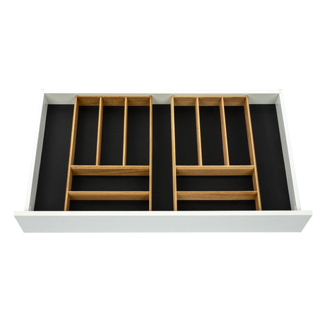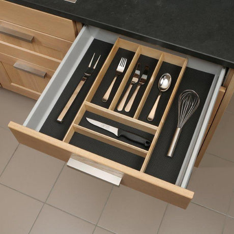 Unser edles Stauraum-System aus Holz ist nicht nur besonders hochwertig, sondern auch besonders schön und dekorativ. Sortieren Sie Ihre Küchenschublade neu mit ganz individuellen, einfach zu kombinierenden Einzelelementen. Zunächst wählen Sie eine Antirutschmatte Ihrer Wahl, farblich passend zu Ihren Küchenmöbeln und kombinieren Sie darauf Besteckkasten, Schubladeneinsatz für Küchenutensilien, Messerblock oder Gewürzeinsatz. Je nach Bedarf und Größe der Schublade ist der Kombiniermöglichkeit keine Grenzen gesetzt. Für hohe Schubladen bietet stauraum dazu passende Aufbewahrungskästen für Lebensmittel, Gemüse oder alles, was Sie griffbereit in Ihrer Küche brauchen – auch sehr dekorativ für die Küchenablage!