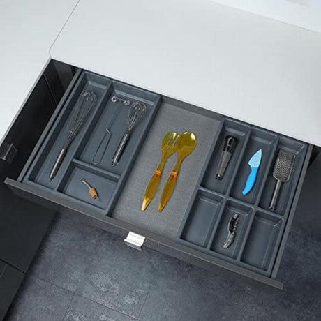 Für Besteckschubladen haben wir ebenfalls ein breites Sortiment an Schubladen Organizern. Wählen Sie zwischen unserer modular kombinierbaren Schubladen Holzserie, unseren zuschneidbaren Varianten aus lebensmittelechtem Kunststoff oder den schicken Bambus Organizern. So oder so schafft ein Besteckkasten die Übersicht, die man in der Küche braucht. Wir beraten Sie gerne.
